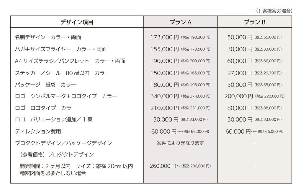 ・デザインを起こすために企画立案が必要な案件の場合、デザイン料とは別に請求させていただく費用です。