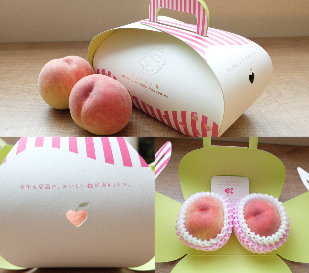 機械漉きタイプの福咲和紙を使用した桃のギフトボックス。桃が 2~3 個入る大きさで「ケーキを贈るように桃を手土産にできる箱」をコンセプトにデザインしました。