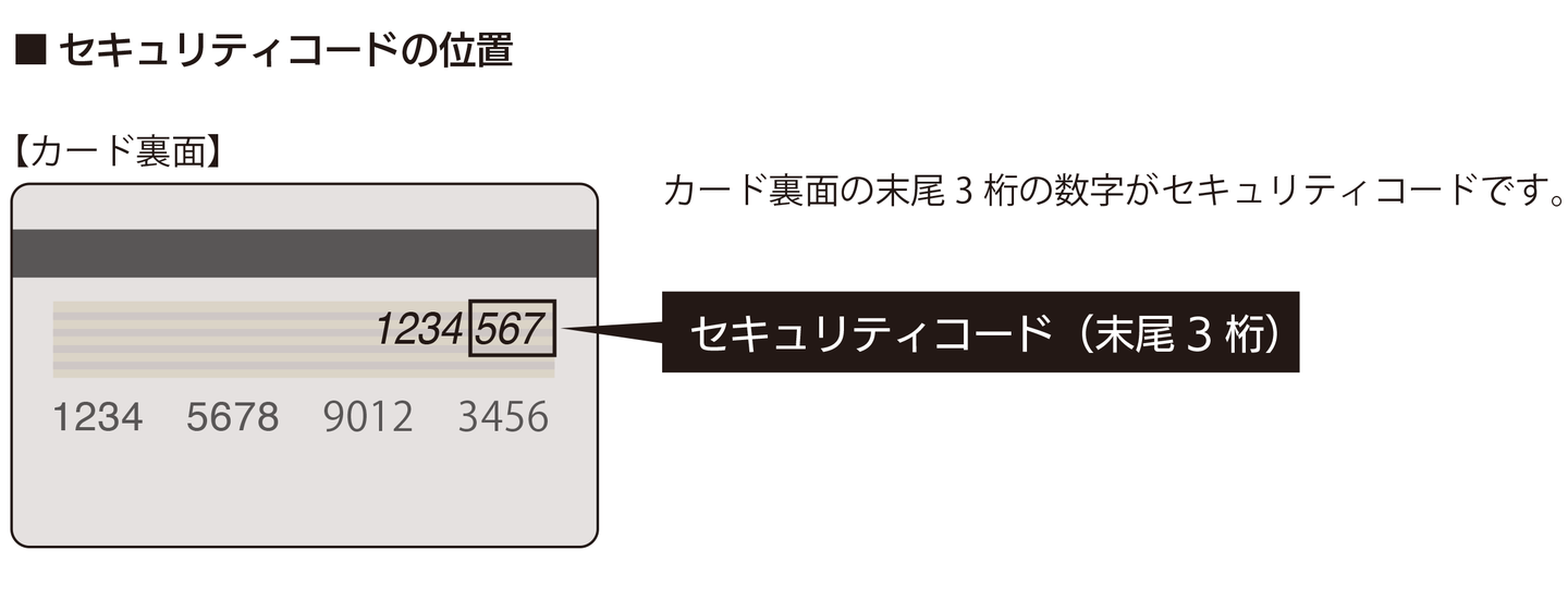 *カード会社によっては、セキュリティーコードが記載されていない場合があります。お手数ですがカード発行会社へお問い合わせください。