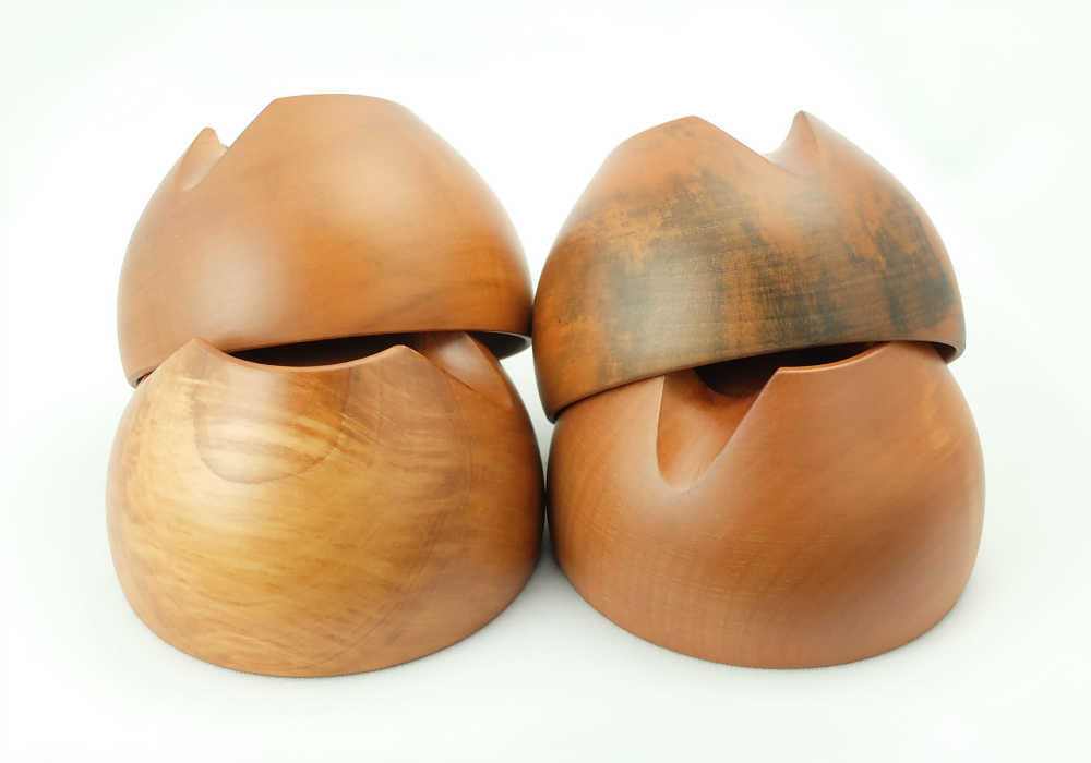 Rakuzenの木地職人が作る木地は合板や集成材でなく、すべて国産天然木の無垢材を材料にしています。国産の天然木は年々貴重になりつつあります。無垢材は集成材と違い、使用するうちに歪むことがございます。木はいきものですから、木が温度や湿度に反応して伸び縮みするのです。それが天然木である証拠ですので、安心してご使用くださいませ。