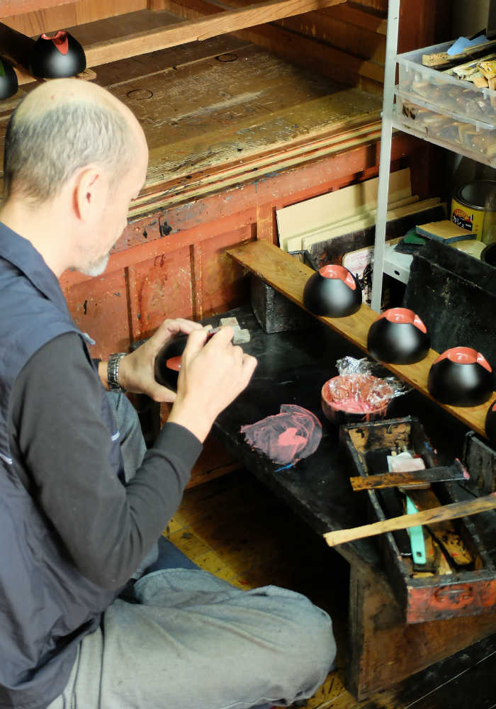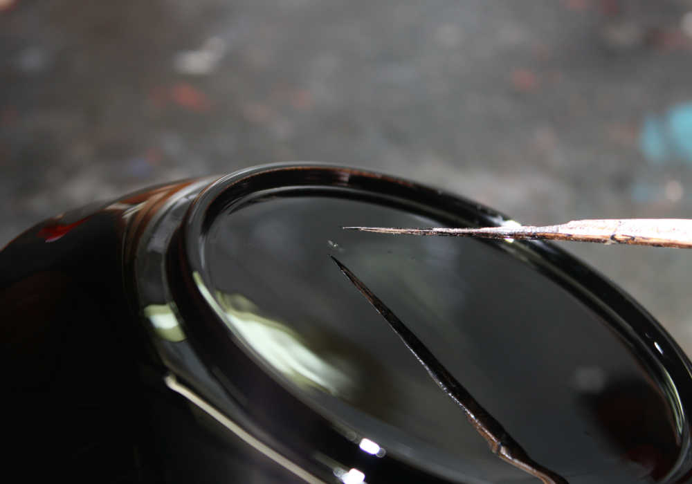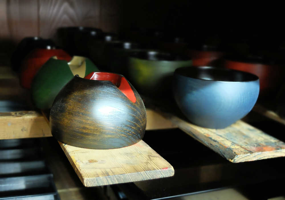 The lacquer bowl is finally finished after it has been dried for a period of one to two and a half months. Japanese lacquer needs a certain level of moisture to solidify, making summer temperatures and humidity levels ideal for this final drying stage.