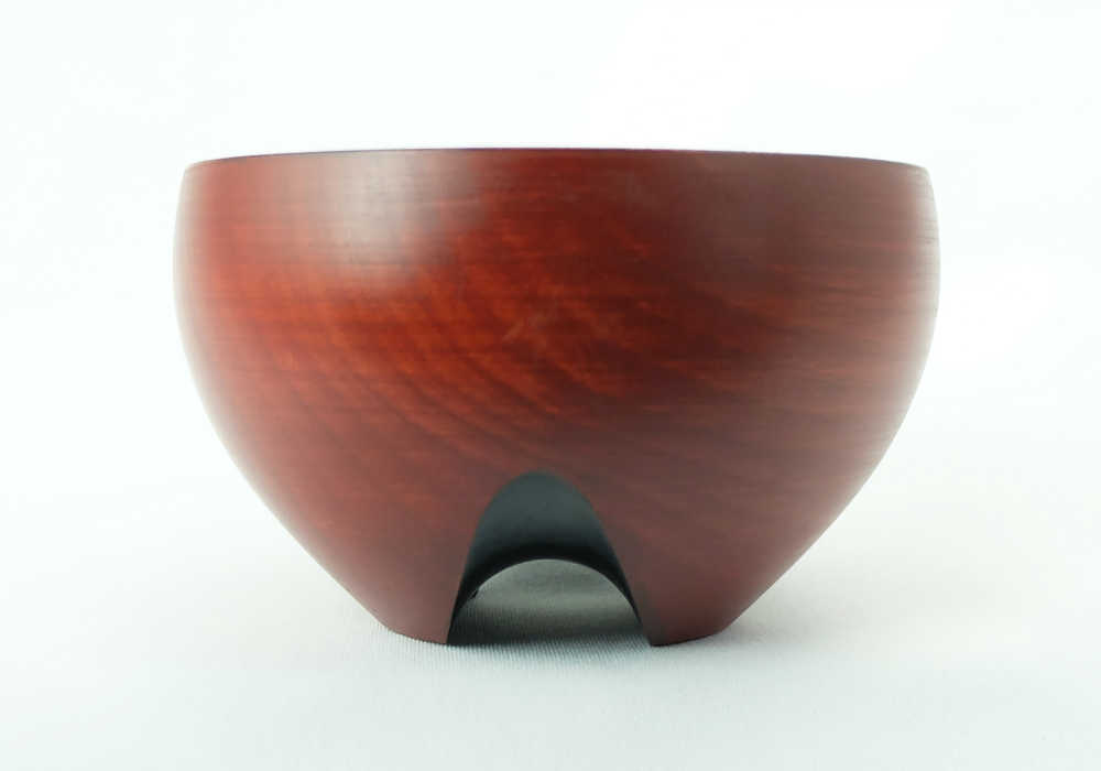 A file is used to carefully shape the groove and then polish the entire bowl. This completes the Rakuzen wooden bowl base.