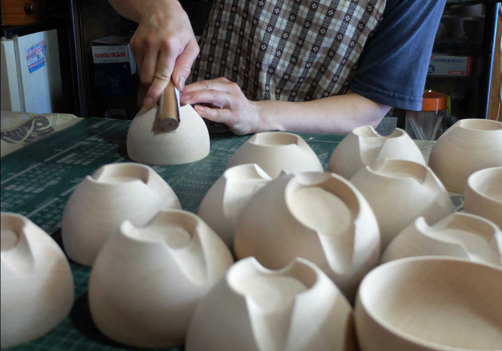 4〜5工程は根気のいる手作業なため、一般的なお椀の3倍もの時間をかけて作られます。