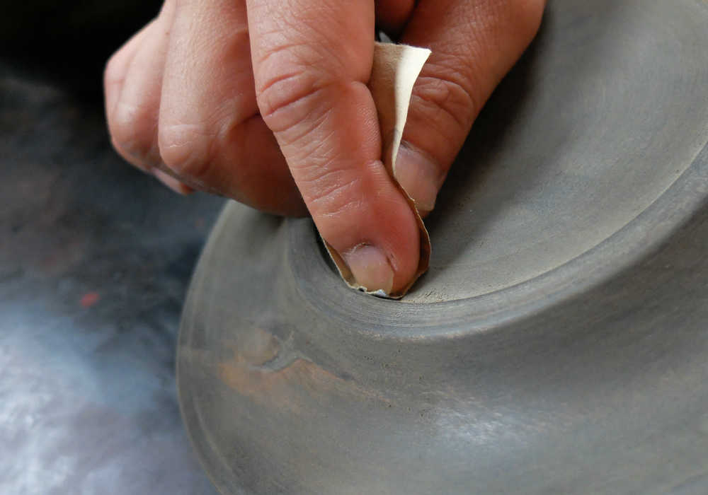 A groove is made on the bottom of the bowl to make it easy to hold. As steps four and five cannot be performed by a machine, they require much time-consuming hand processing.