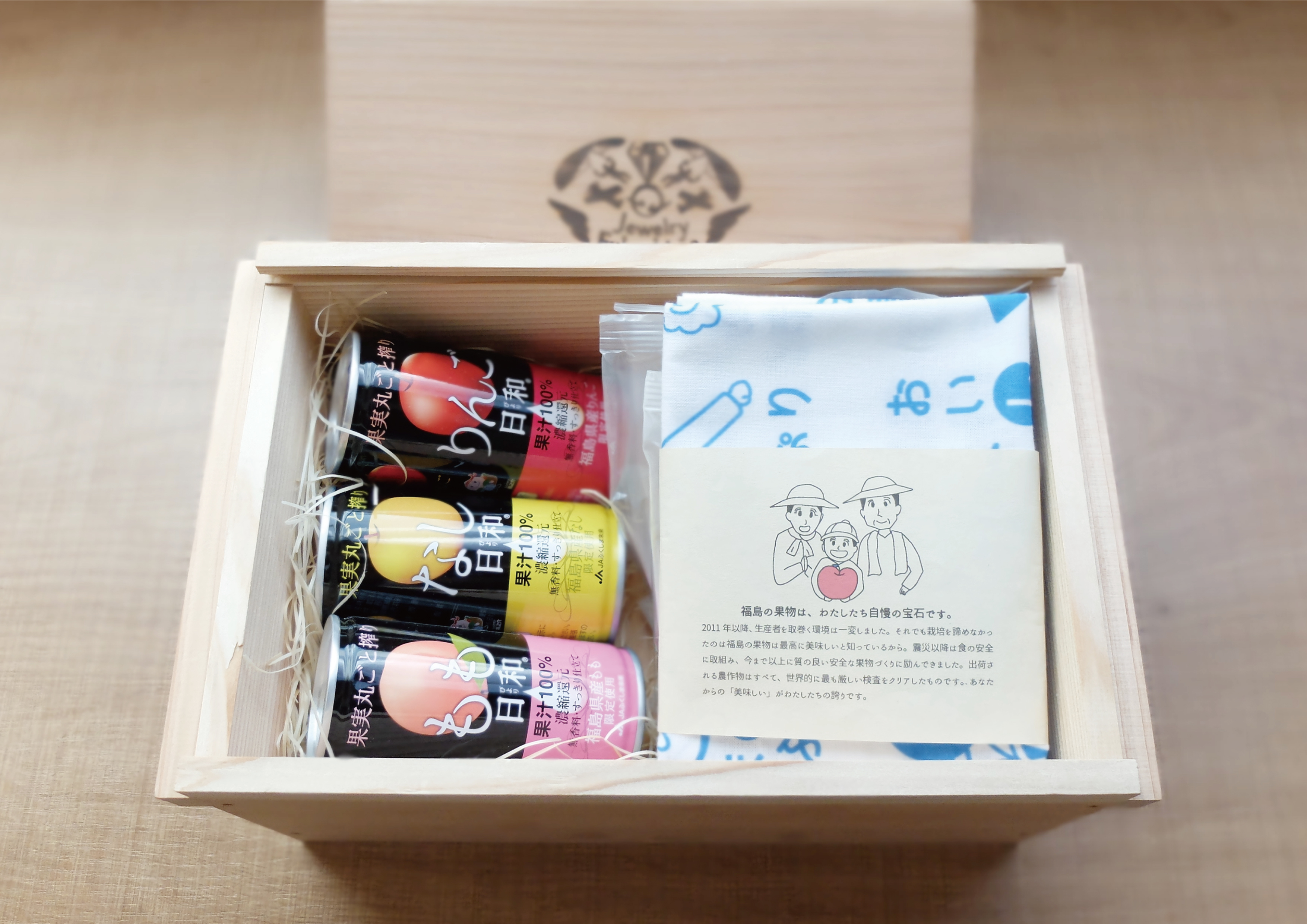 ギフトセットのプロデュース、ふきん、リーフレット等をデザイン