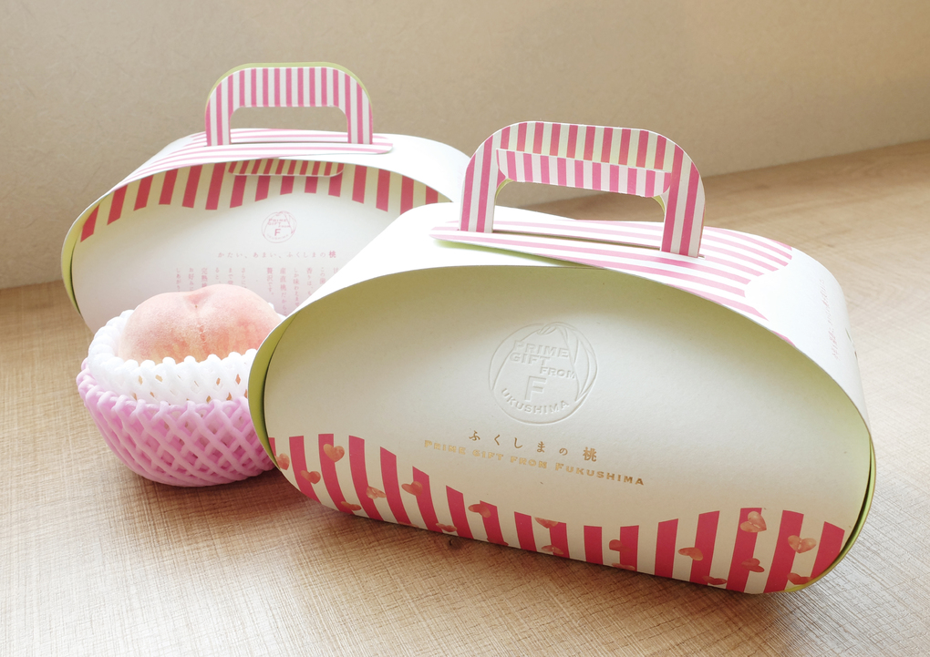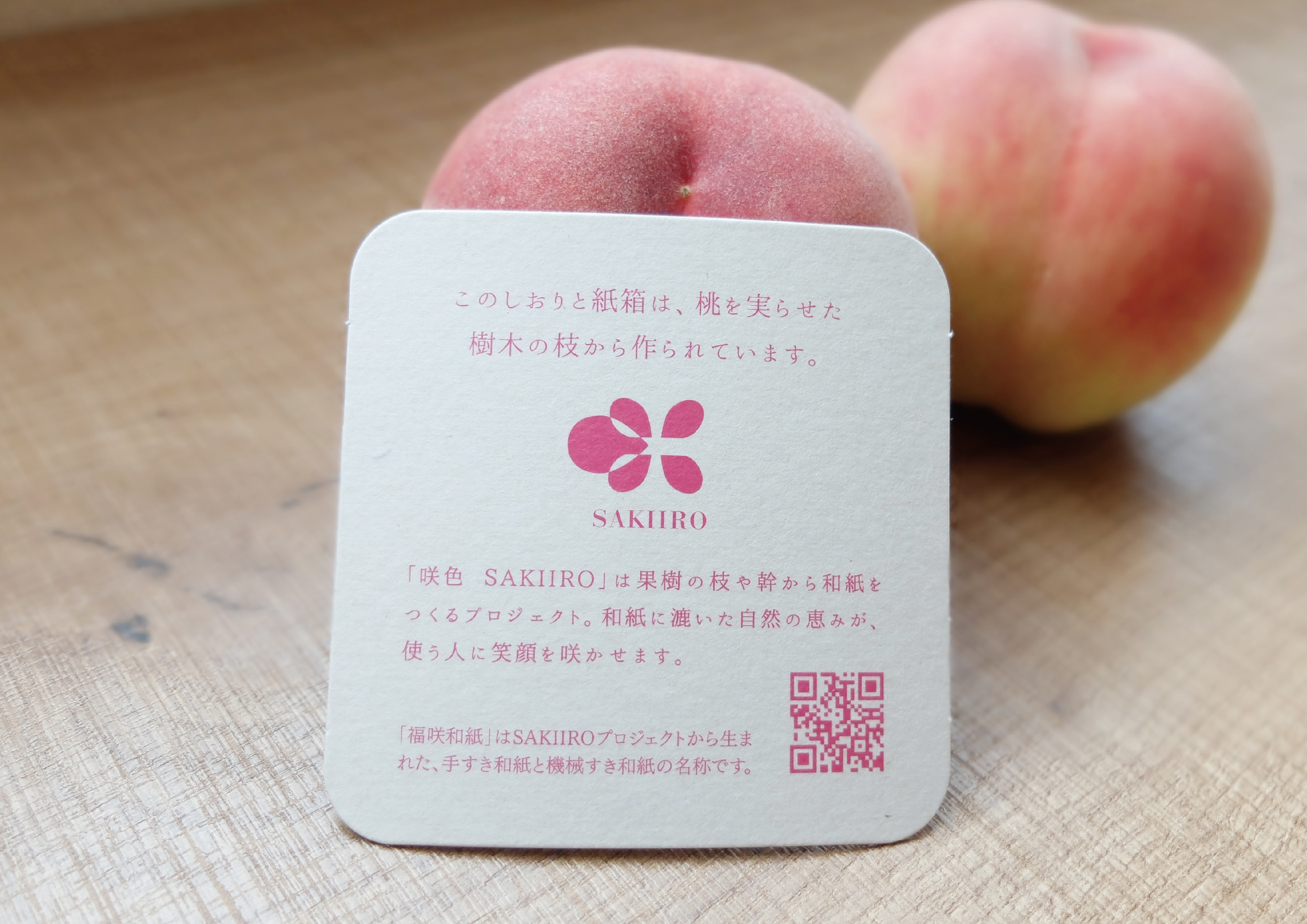 桃の剪定枝から生まれた和紙「福咲和紙」を使った桃専用ギフト箱のデザイン